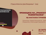 Утре, среда, 25 октомври, во 12 часот, во Градската библиотека „Браќа Миладиновци“ во Скопје, ќе биде промовирана книгата „Транскултурни разногласија: Избрани критики и есеи“ од Анастасија Ѓурчинова. За книгата ќе говори Лидија Капушевска-Дракулевска, а модератор ќе биде Александра Јуруковска. „Транскултурни разногласија“ (издание на МИ-АН) е критичко-есеистичко дело со текстови чија проблематиката е поврзана со книжевната рецепција и интерпретација, традуктологијата, идентитетот, егзилот, границите и слично, а Ѓурчинова ги пишувала последниве десетина […]